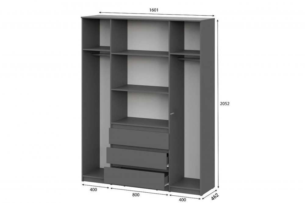 ДЕНВЕР Комод 3 ящика двухстворчатый Серия 2 (Графит серый)